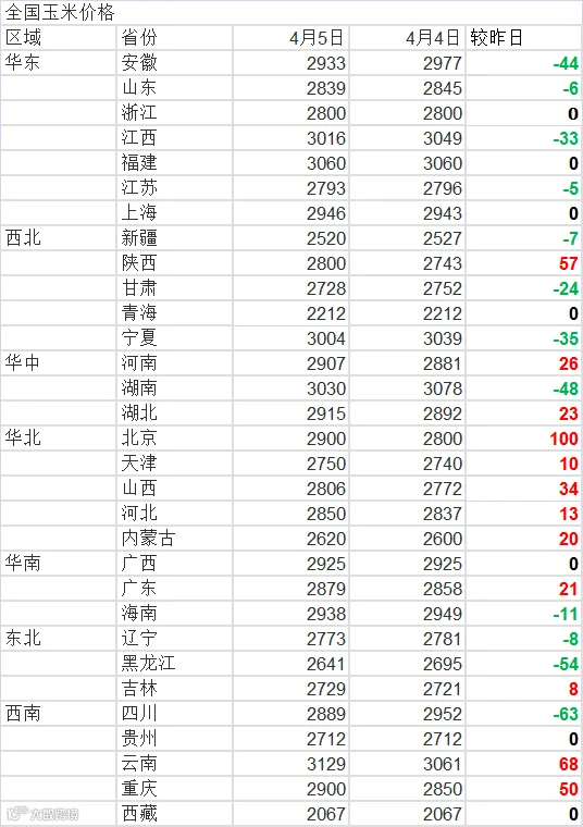 2022年4月5日玉米价格、豆粕价格