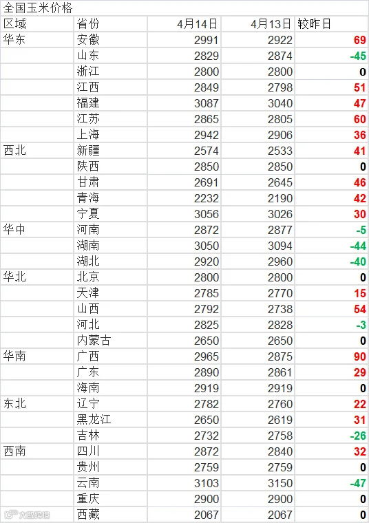 2022年4月14日玉米价格、豆粕价格 一箱蛋