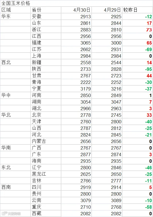 2022年4月30日玉米价格、豆粕价格 一箱蛋