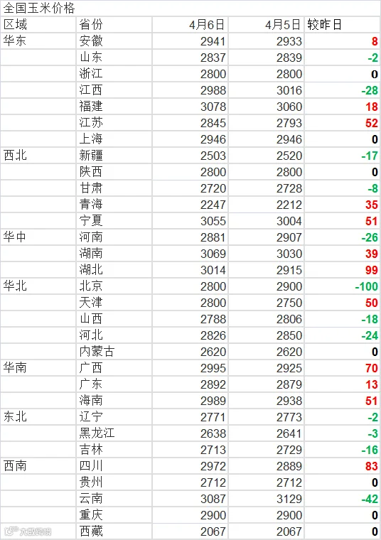 2022年4月6日玉米价格、豆粕价格 一箱蛋
