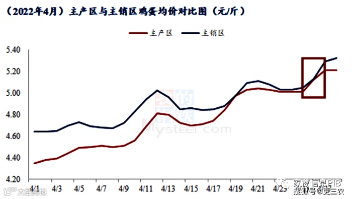 在国内鸡蛋市场,4月初,全国鸡蛋批发均价徘徊在4.35元/斤左右,但是,进入4月末,鸡蛋批发均价涨破5元/斤,价格冲高5.17元,阶段性,鸡蛋价格大涨0.82元/斤,涨幅达到了18.9%!尤其是,4月末受北京地区出现口罩问题,批发市场补货需求陡增,鸡蛋到货均价大幅上涨,这也带动了周边省市养殖端鸡蛋价格的上扬,市场颇有“火箭蛋”的态势,短短3天,蛋价涨幅近4%!