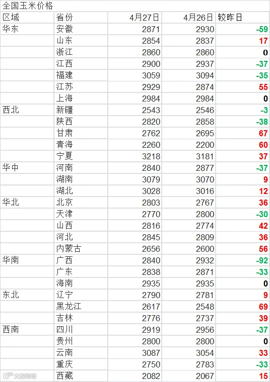 2022年4月27日玉米价格、豆粕价格 一箱蛋