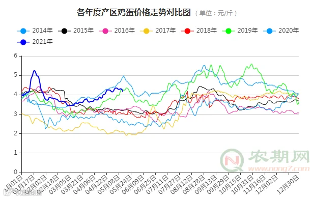 供应方面:虽目前价格在历史处于高位,但现在也没有出现真正的一蛋难求的局面,说明最近的供应还是不少,近期贸易商走货不快还是稍有压力。南方销区市场存在个别倒挂现象,贸易商亏损因为货多产生的恶意竞争。