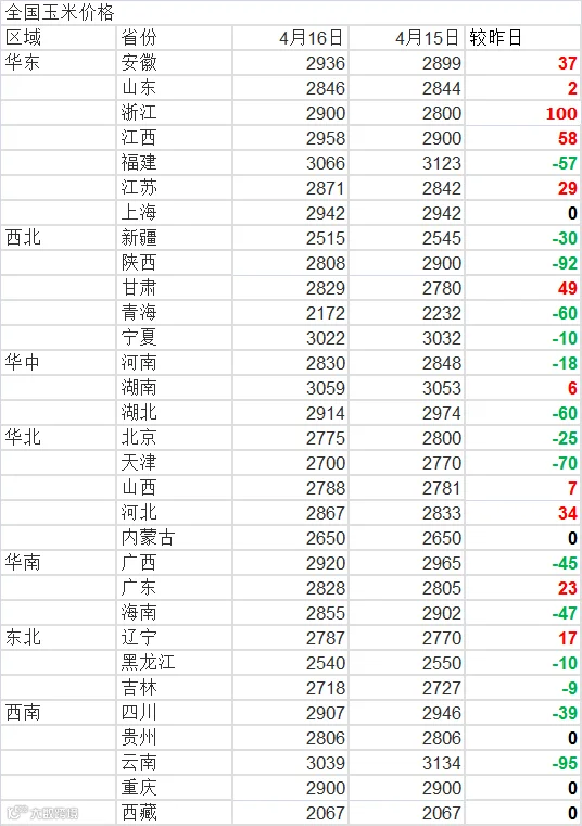 2022年4月16日玉米价格、豆粕价格 一箱蛋