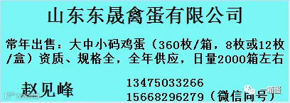 卖蛋、买蛋?找不到货源销路?【一箱蛋】全国鸡蛋供求信息平台,联合全国超过2万名蛋商/蛋鸡场/用蛋企业,超过10万养殖户,信息加入,点击关注公众号,并在对话框输入您的信息(信息包含:供应或求购的地区/品种/数量/联系人及电话等)。热线(微信):17849903345