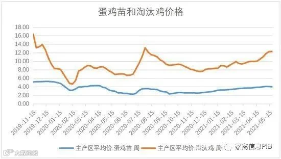 根据wind数据显示,截止5月21日,蛋鸡苗价格为4.0元/只,较上月同期上涨0.08元/只,涨幅2.0%;淘汰鸡价格为12.30元/公斤,较上月同期上涨1.78元/只,涨幅16.92%。