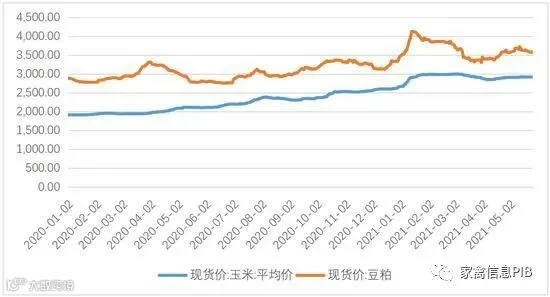 鸡蛋饲料原料玉米、豆粕价格走势图