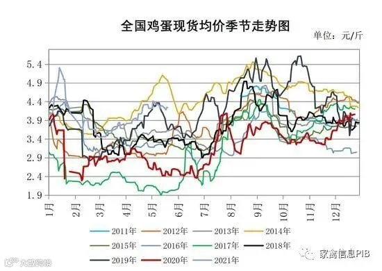 通过对比历史价格走势图可以发现,鸡蛋市场价格走势季节性规律明显,随着端午节日到来,市场短期需求有所增加,蛋价有望短暂回升,不过提振幅度不及五一节日,价格上涨幅度有限,加上,在补栏量不断上升,淘汰量趋于放缓的情况下,市场预期供给较为宽松,蛋价或将呈现先有所反弹再进入回落阶段。