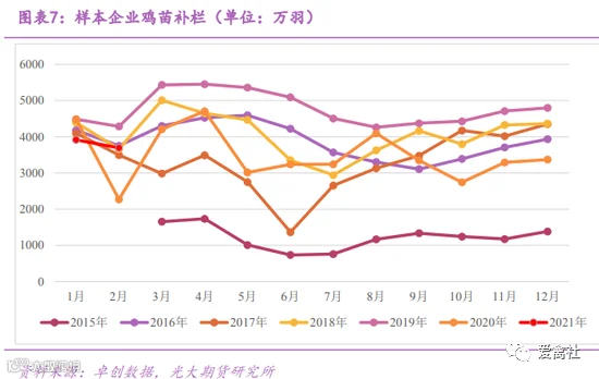 面对禽流感病毒的包围,国内防控措施更加严格,但从年初至今,国内也发现了3起禽流感疫情,这也使得补栏数据出现下滑。据卓创数据显示,2月份,代表的育雏鸡补栏的鸡苗销量为3695万只,环比前期出现下降。
