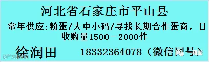 卖蛋、买蛋?找不到货源销路?【一箱蛋】全国鸡蛋供求信息平台,联合全国超过2万名蛋商/蛋鸡场/用蛋企业,超过10万养殖户,信息加入,点击关注公众号,并在对话框输入您的信息(信息包含:供应或求购的地区/品种/数量/联系人及电话等)。热线(微信):17849903345