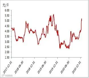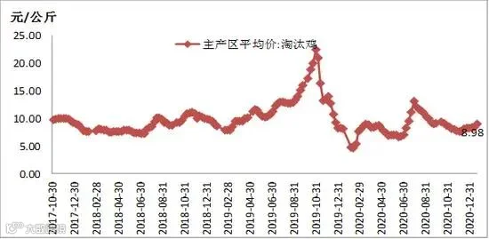 淘鸡节奏将决定短期供应,因恢复盈利状态,部分待淘老鸡有压后出栏现象,也将对远期鸡蛋市场供应形成压力,后市淘鸡情况值得关注,截至2021年1月22日,全国淘汰鸡均价为8.98元/斤,上周为8.34元/斤。周内主产区淘汰鸡价格先涨后跌,全国日均价由4.57元/斤涨至4.91元/斤后跌至4.68元/斤;周均价4.75元/斤,环比上涨0.17元/斤,涨幅3.77%。受鸡蛋价格明显上涨拉动,养殖单位盈利空间扩大,淘汰老鸡积极性降低,低价收货略有难度,多数产区淘汰鸡价格上涨,河北、黑龙江等少数市场有停收现象,周边市场受此影响老鸡消化速度略有加快。