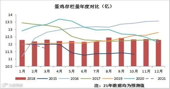 1、产蛋鸡存栏倾向于缓慢下降,供应压力逐渐缓解