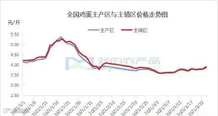 2021年春节之后,鸡蛋的价格一直处于低位运行。从供应面来看,蛋鸡的存栏量一直处于较高水平,据我的农产品网数据统计,2月份存栏量大约在12亿余只,远远超过蛋鸡存栏量的平衡点。春节之前因为疫情的突然出现,河北作为鸡蛋的主产区又是疫区,当地的鸡蛋无法正常输出,出现下游经销商到其他产区抢货的现象,蛋价不断攀升,行情较好,使得当时正常该淘的老鸡延淘,强制换羽的情况也不在少数,打破了正常去产能的节奏,存栏量没减反增;目前新开产的蛋鸡主要是11月-12月上的鸡苗,据我的农产品网统计,这两个月的鸡苗销量处于较低水平,新开产的蛋鸡数量有限。春节之后一直处于消化库存的阶段,蛋价因为养殖成本的高位运行,养殖端惜售心理明显,拒绝低价,库存消化缓慢进行。从需求面来看,春节过后学校开学,工厂开工,需求缓慢增加,但因春节之前就地过年政策的影响,下游经销商备货充足,春节之后需求无明显利好刺激,库存消化速度缓慢,蛋价一直处于成本之下较低水平,不愠不火。