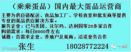 卖蛋、买蛋?找不到货源销路?【一箱蛋】全国鸡蛋供求信息平台,联合全国蛋商/批发商/蛋鸡场/用蛋企业,让您卖蛋买蛋货比三家!信息加入,点击关注公众号,并在对话框输入您的信息(信息包含:供应或求购的地区/品种/数量/联系人及电话等)。热线(微信):17849903345