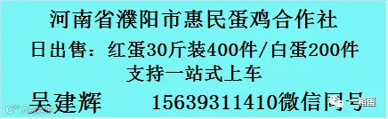 卖蛋、买蛋?找不到货源销路?【一箱蛋】全国鸡蛋供求信息平台,联合全国蛋商/批发商/蛋鸡场/用蛋企业,让您卖蛋买蛋货比三家!信息加入,点击关注公众号,并在对话框输入您的信息(信息包含:供应或求购的地区/品种/数量/联系人及电话等)。热线(微信):17849903345