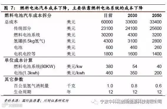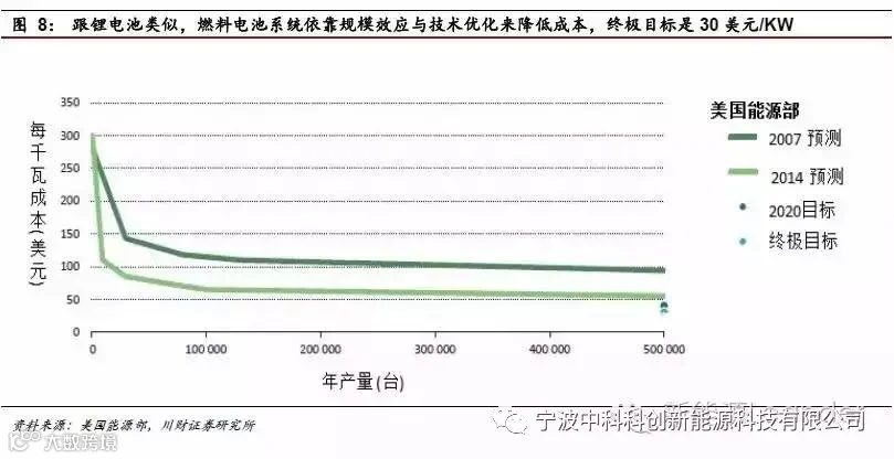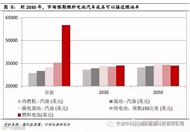 1)市场预计燃料电池到2030年有望接近燃油车水平