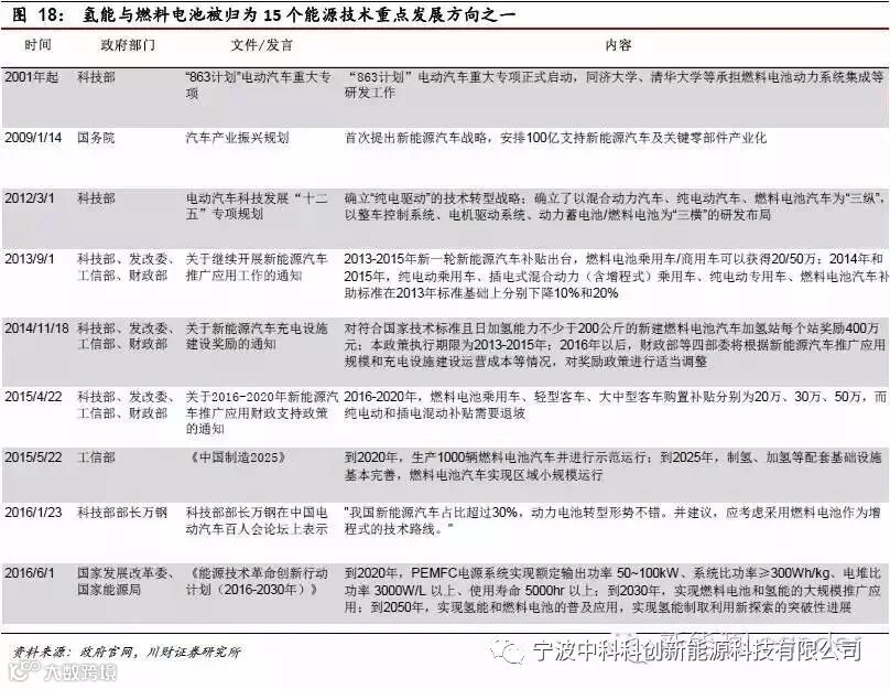 四是政策方面的转向。2001-2015年,燃料电池是跟纯电动和插电混动汽车一起,归为新能源汽车技术之一,并未单独列出,由科技部等四部位统一规划。2016-2020年燃料电池汽车的补贴在20-50万/台,而且2020年前补贴不退坡。近期,我们注意到国家能源局也参与进来,跟发改委一起印发了《能源技术革命创新行动计划(2016-2030)》,其中氢能和燃料电池被列为15个重点发展方向之一。