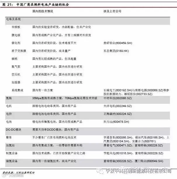 中国厂商在燃料电池产业链的机会:
