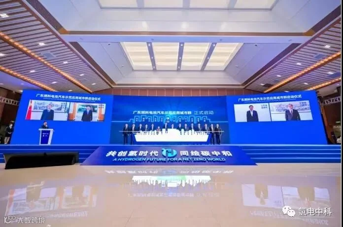 本次会议以“共创氢时代,同绘碳中和”为主题,以线上线下相结合的形式进行,会上明确,广东城市群将紧抓国家开展燃料电池汽车示范应用契机,力争到示范期末实现电堆、膜电极、双极板、质子交换膜、催化剂、碳纸、空气压缩机、氢气循环系统等八大关键零部件技术自主可控,并具备自主知产权的产品配套应用,推广超万辆燃料电池汽车,形成超过46万吨的氢气供应体系,建成200座以上加氢站,降低氢气售价至35元/公斤以下(省内30元/公斤以下),构建完善的燃料电池汽车政策体系等目标。