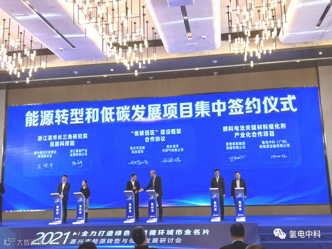10月29日,氢电中科(广州)新能源设备有限公司董事长周梅林一行,应邀参加“嘉兴市能源转型与低碳发展研讨会”,了解氢能产业行业态势和技术发展前沿,对接与会企业洽谈商业协同合作事宜。在大会签约仪式现场,我司与爱德曼氢能源装备有限公司签订了《燃料电池关键材料催化剂产业化合作项目》的战略合作协议。