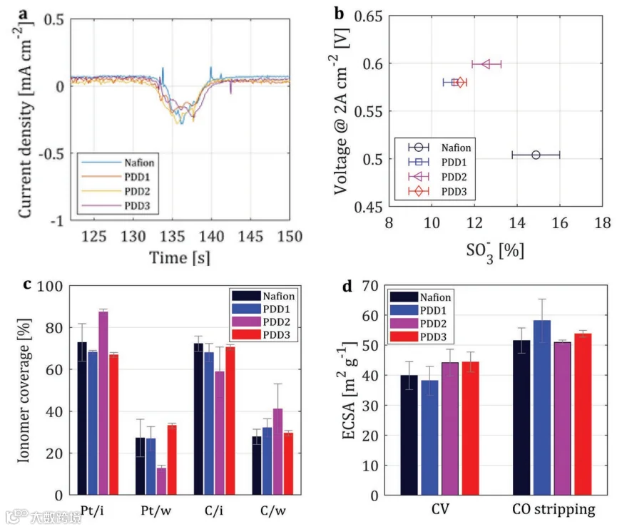 图2. CO置换计算磺酸根和离聚物覆盖率(Adv. Energy Mater. 2022, 2201063)