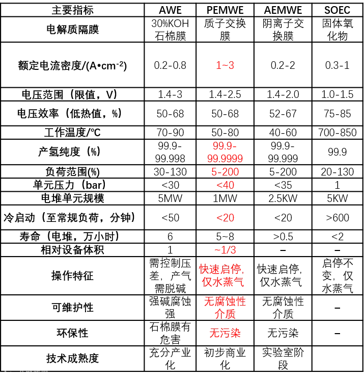 表1 主要水电解方式指标对比*