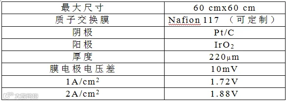 在保证膜电极性能的前提下,我司采用自动化程序控制涂布,单片面积60cm ×60cm,自动化操作保证膜电极的一致性,膜电极主要参数及性能如下。