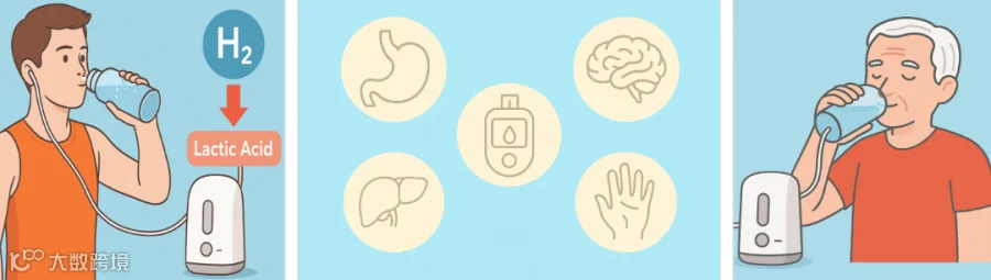 此后,氢气的抗氧化、抗炎和抗细胞凋亡作用在大量动物疾病模型中得以证实,其在人体临床研究中也展现出对多种疾病的有益作用,比如代谢综合征、糖尿病、高脂血症、帕金森病、认知障碍、类风湿性关节炎、慢性乙型肝炎、血管功能等方面。不仅如此,后续研究还发现氢气在运动领域也有积极效果,能降低运动中的乳酸,通过氢气溶解的水传递氢可提高运动员肌肉表现、减少疲劳并改善运动引起的酸中毒,说明运动疲劳能够借助氢气进行有效调节。