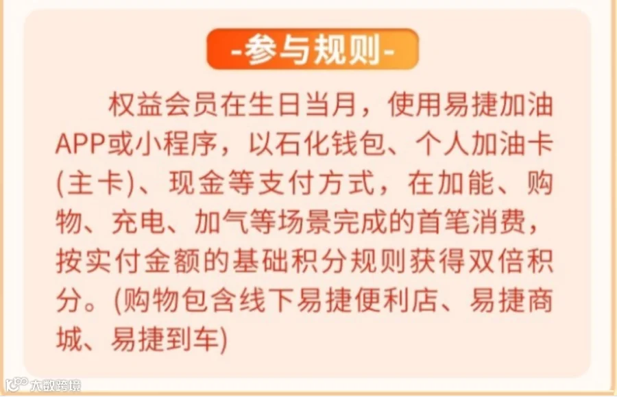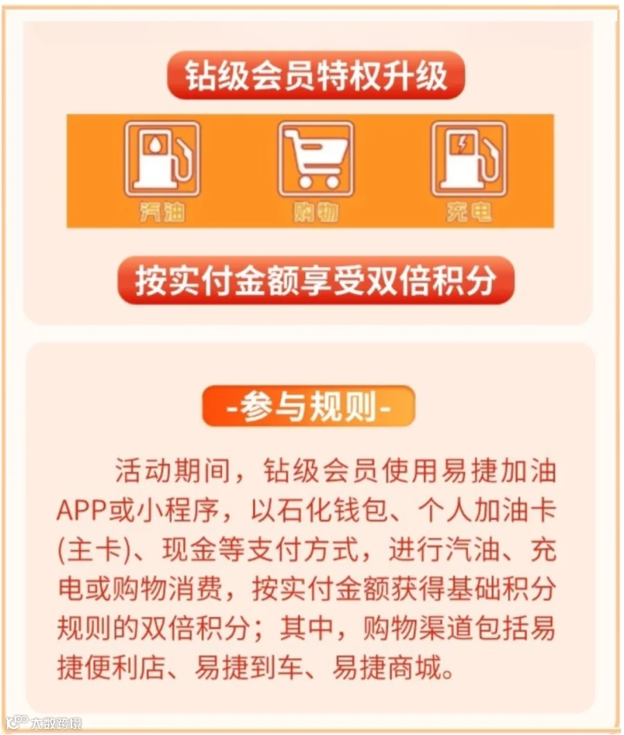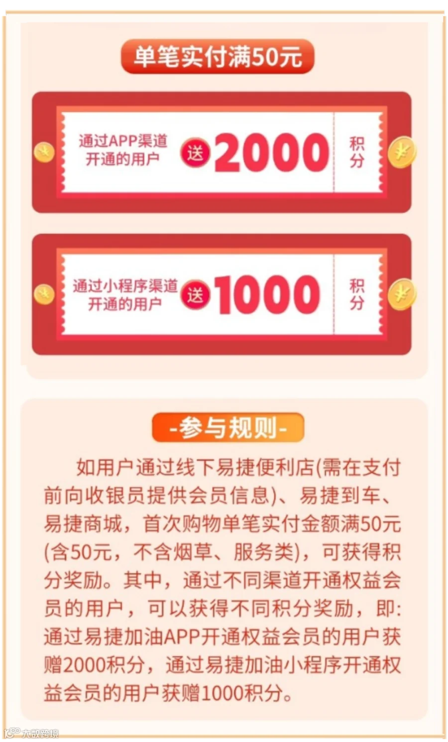 以上活动积分规则除“新会员首消满额送积分”外,按“就高享受”原则,不支持叠加赠送。会员持加油卡消费的,需提前通过“易捷加油”-“权益会员”-“绑定油卡”完成加油卡绑定并设置为常用卡。会员在线下易捷便利店消费或使用现金支付的,需在支付前向收银员提供会员手机号或会员二维码,进行会员身份的识别。