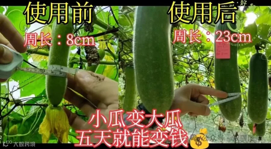 2024年9月28日我们回访贺州市蔬菜种植户苏大哥,前期在“毛节瓜”上施用了“鲍利葛+鲍利液”套餐肥料,10天时间,现在地里能明显看到,施用了套餐肥的毛节瓜,叶片长势厚绿有色泽,肥力充足花多瓜多。其他肥料套餐,叶片薄且微黄,缺肥不够活力。