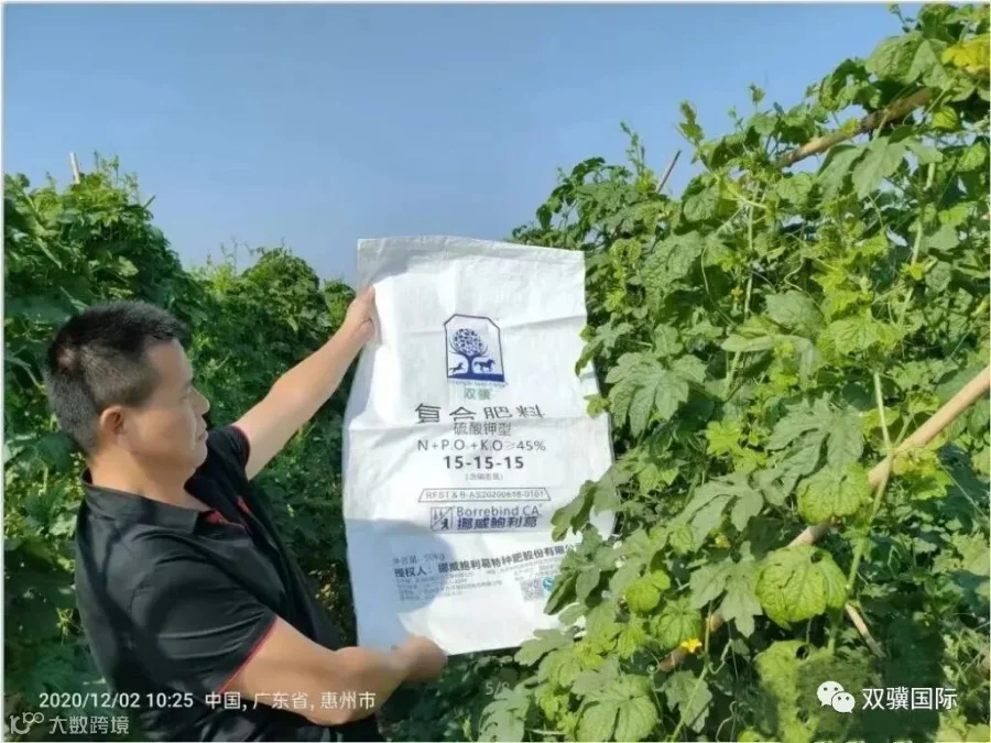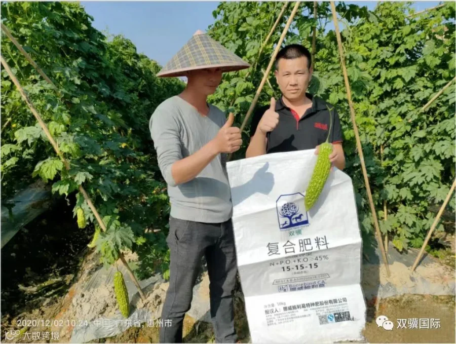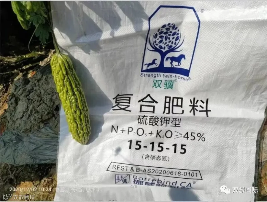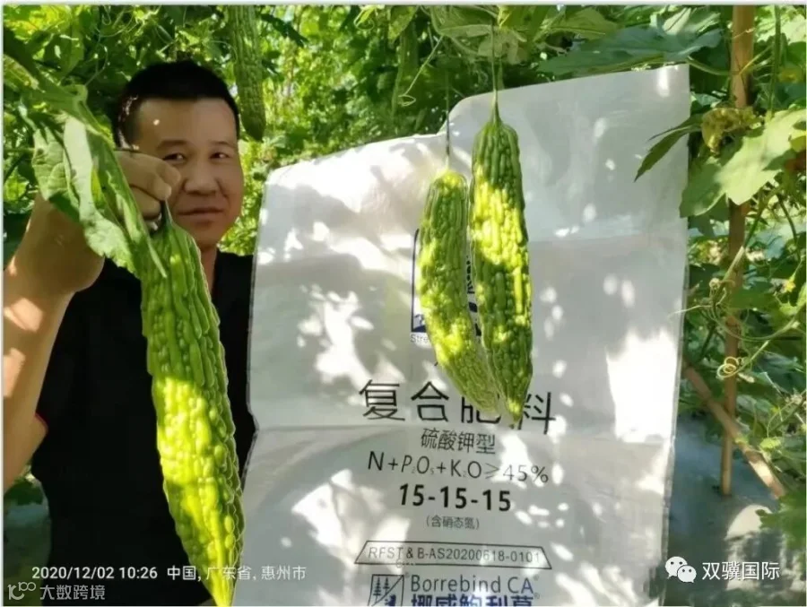 李哥告诉我们,今年一直都是使用挪威双骥特肥,之前种植的茄瓜、豆角都是使用这个特肥,感觉好用,所以一直在用,在苦瓜上的表现也是杠杠滴,叶片厚实、油绿绿,瓜也好。