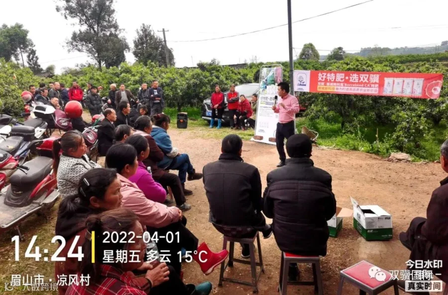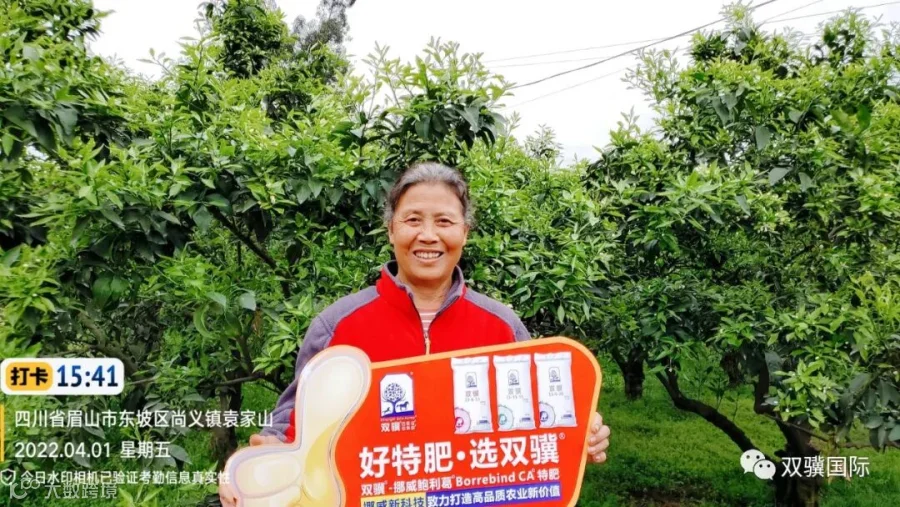 我们采访组来到的片块果园共有十亩左右,栽种的果树全是柑橘,这片果园选用的全是双骥挪威鲍利葛15-15-15这款肥料。
