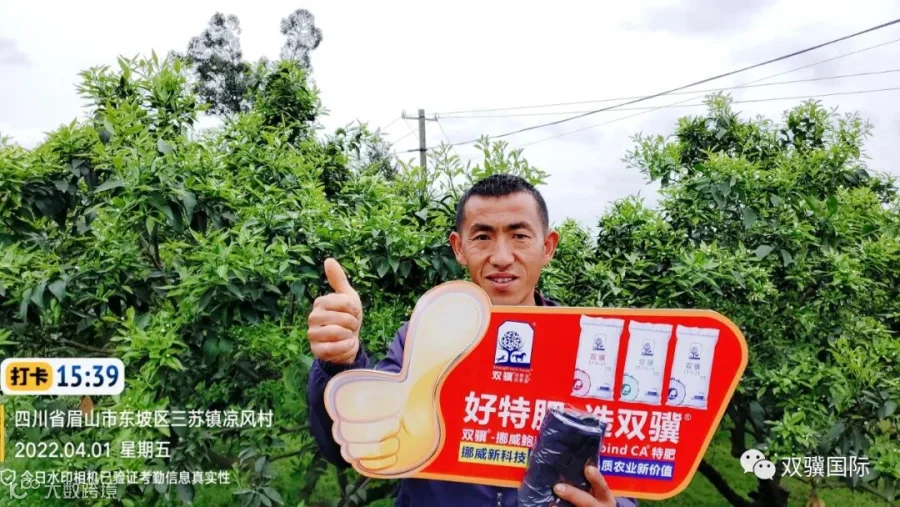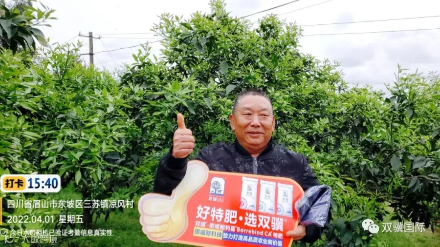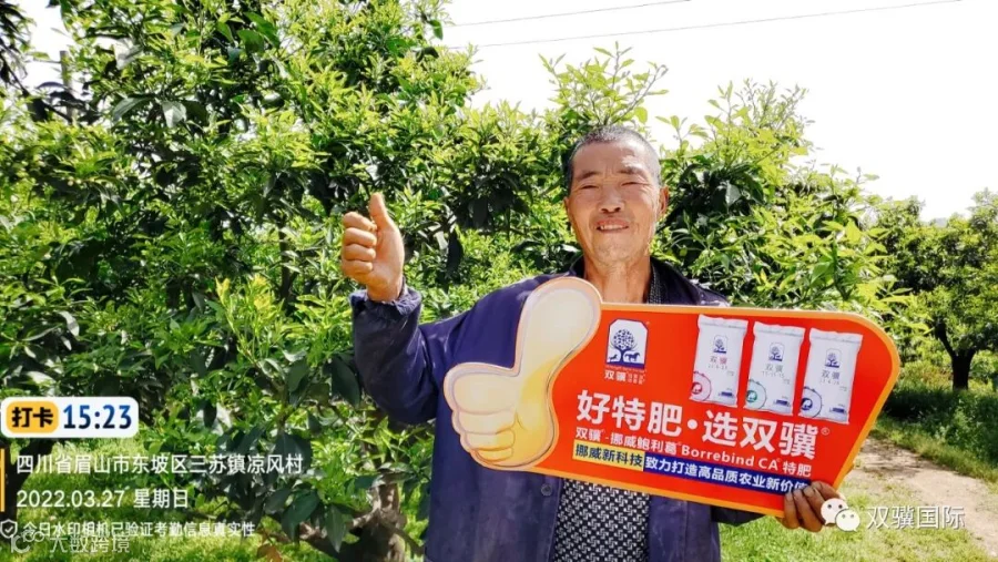 据采访组了解,这片果园在使用双骥挪威鲍利葛15-15-15这款肥料后效果非常好,果树的花和嫩梢生长得很不错,特别是梢非常整齐且粗壮,比其他没有用这款肥料的抽梢、开花都早至少三天以上,后期挂果、产量都有很大的帮助。