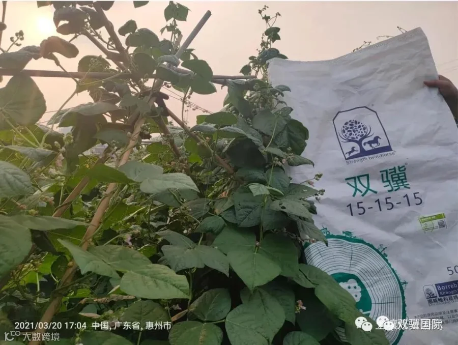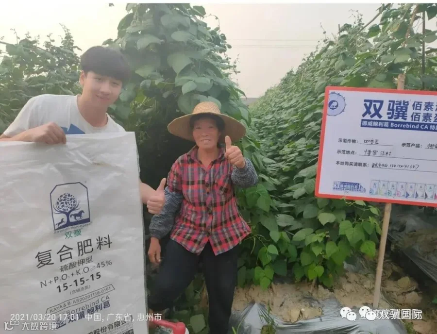 大姐是广西人,在博罗种植也十多年了,从19年开始使用挪威双骥特肥,种植的四季豆产量高,色水好,关键是豆角的卖价好,总能比别人的贵3-4毛,对这个特肥非常的满意。