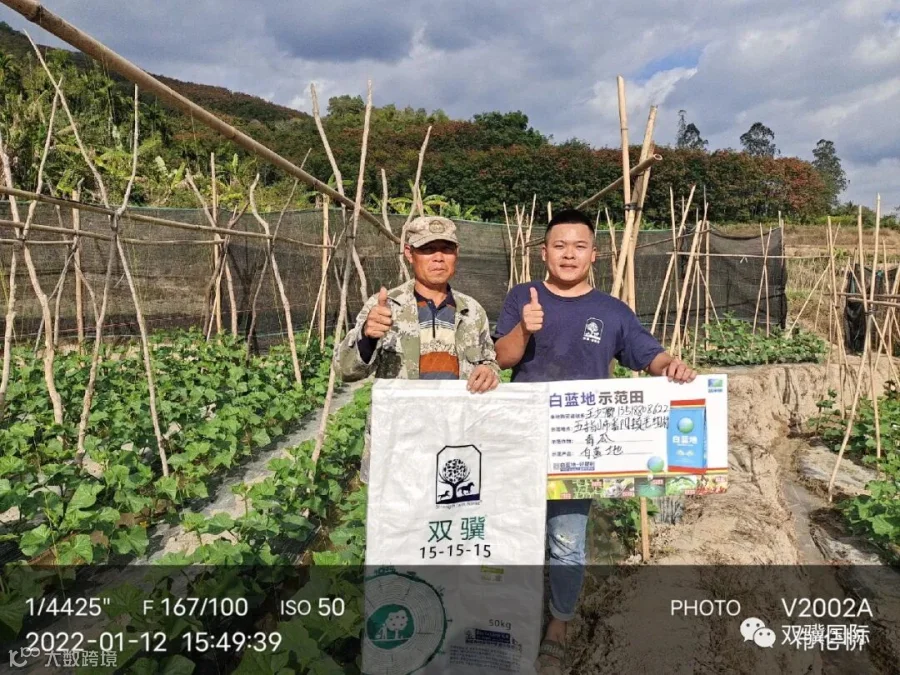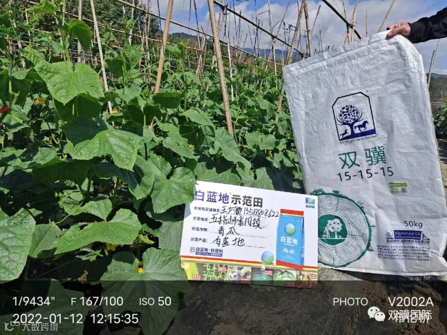 示范肥料:挪威双骥鲍利葛15-15-15+白蓝地