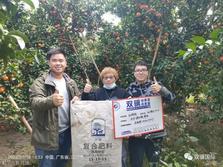 关老板种植的这片柑桔树,从2021年开始就全部施用双骥-挪威鲍利葛特种肥,从各方面反映出来的效果明显,砂糖橘果实大小均匀,色泽鲜艳,叶色油绿发亮,产量高,比前年产量多出10万斤!