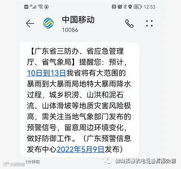 今日中午,广东预警信息发布中心还通过通信运营商短信端口下发了紧急提醒: