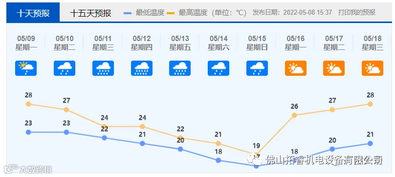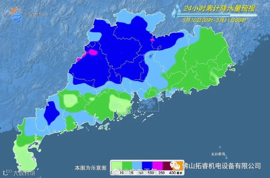 广东省气象台5月8日预报,5月10日至13日我省有持续性强降水,大范围有暴雨到大暴雨、局地有特大暴雨的降水过程,将是今年以来广东强度最强、范围最广、持续时间最长的强降水过程。另据佛山市气象台同日预报,5月10日我市有中雷雨;5月11日有大雨,局部暴雨;5月12日、13日有暴雨、局部大暴雨。