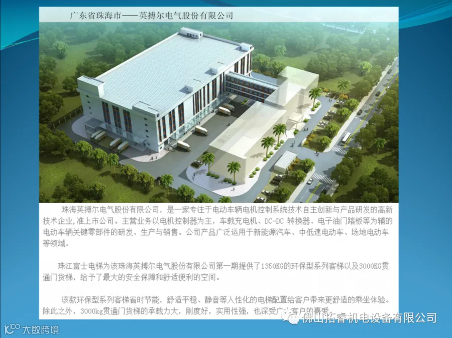 珠江富士电梯(中国)有限公司(以下简称“珠江富士电梯”)是一家集设计、研发、制造、销售、安装和维护为一体的现代化大型专业电梯供应商,专业生产各类乘客电梯、载货电梯、家用电梯、医用电梯、自动扶梯&自动人行道等,年生产量可达10000多台。珠江富士产品畅销全国各地及服务网点网络遍布全国,产品还远销印度尼西亚、马来西亚、东帝汶、沙特阿拉伯、印度、越南、柬埔寨、泰国,南美洲、非洲等国家和地区。