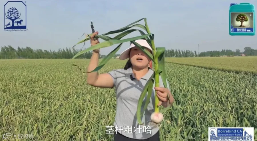使用了鲍利精的大蒜,叶片宽绿,蒜头大,青枝腊杆不早衰,抗病能力强!