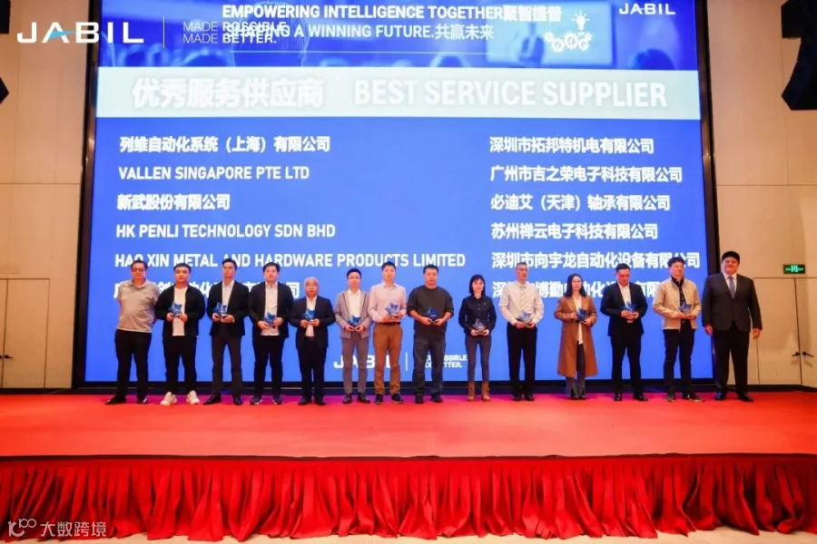 真诚地感谢AIP领导对我们的肯定,Lisa代表拓邦特上台领取“优秀服务供应商”的奖牌。借此机会我们也要表扬JABIL工作组的全体同仁,特别是服务在广州工厂的Jason及跟进印度交付的Lucia。在即将到来的2025年,我们要继续发挥数字化运营平台的优势,国内与海外团队联动,在快速响应、现场技术支持等方面下功夫,落实JABIL优先,保证质量,进一步提高服务水平。