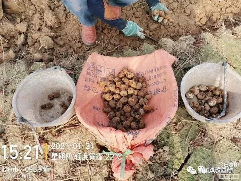 2021年1月21日,广西合浦县东江村马蹄种植户七王大哥邀请我们到合浦县,因他正在收获马蹄准备出售。