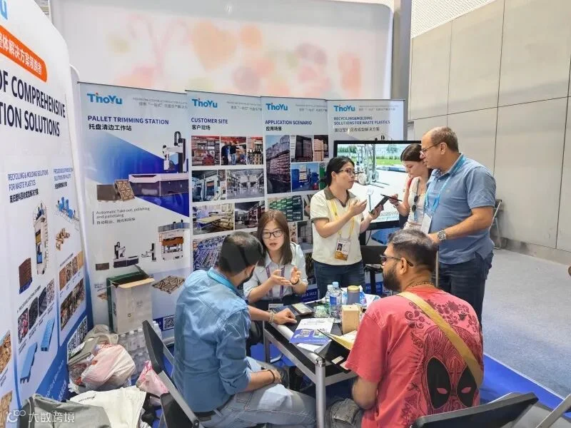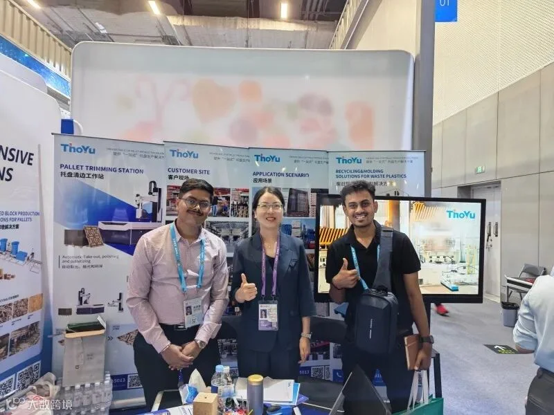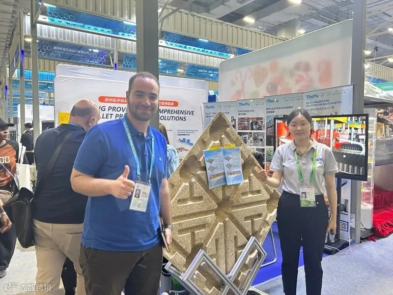 大量初次接触模压托盘设备的外国客户,通过现场讲解与资料翻阅,首次深入了解了模压托盘及相关设备,有效实现了技术与品牌的大范围传播。