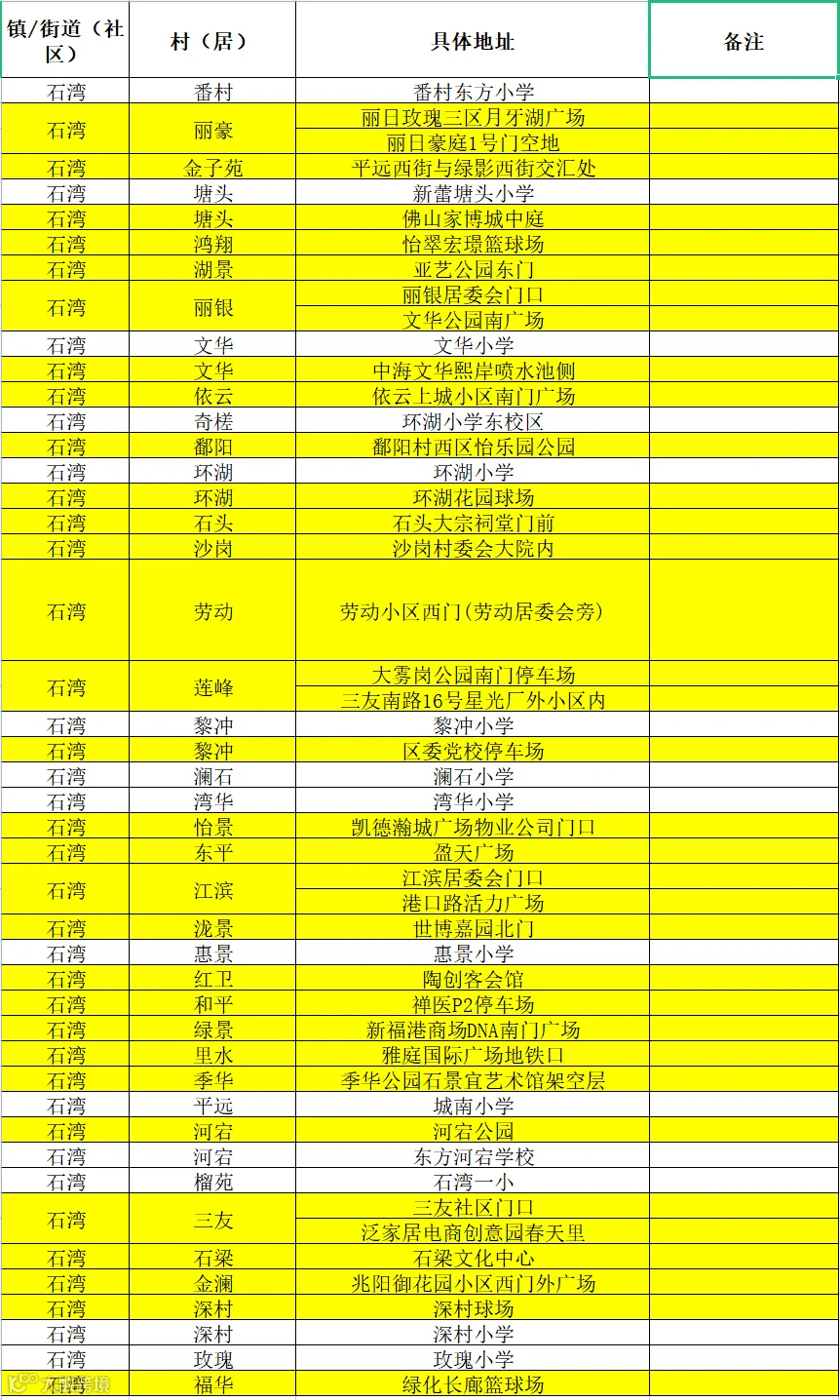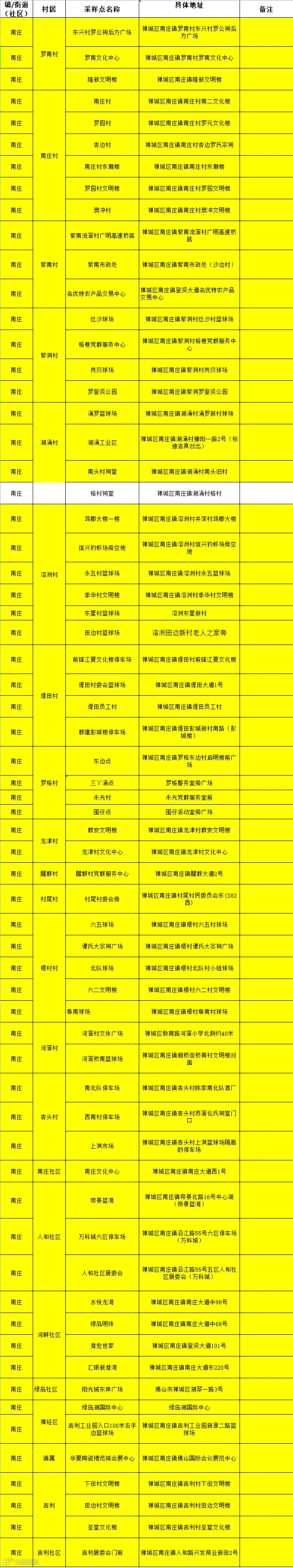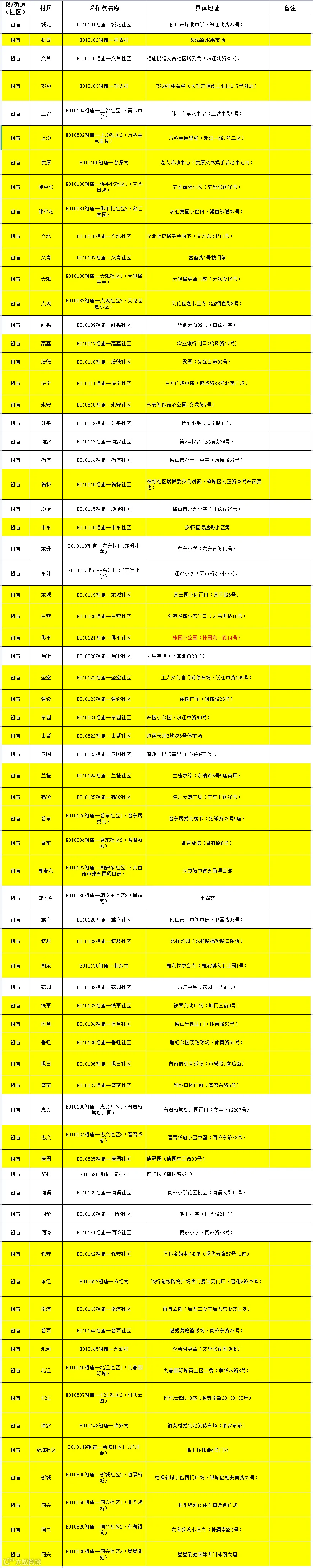 四、请持黄码以及收到短信提醒的市民朋友,到就近黄码核酸采样点进行核酸检测,采样点位有调整,详见附表。