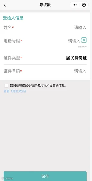 4.点击“保存”即可生成“粤核酸码”,受检人截图并保存