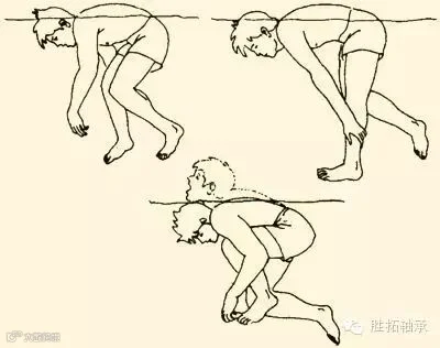 入水后应尽量避免头颈部浸入冷水里,不可将飞行帽或头盔去掉。头部和手的防护是相当重要的。为了减少水接触的体表面积,特别是保持几个高度散热的部位,即腑窝、腹股沟和胸部,在水中应取双手在胸前交叉,双腿向腹屈曲的姿势。如果有几个人在一起,可以挽起胳膊,身体挤靠在一起以保存体热。