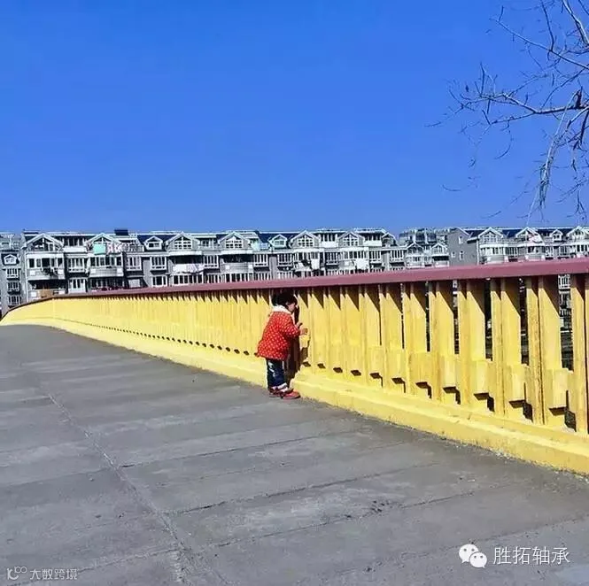 上图这个构图整体是蓝天线 / 居民楼 / 黄色桥栏 / 灰色地面, 四个节面分层明显,色彩填充框架,体现比较匀称的整体效果。中间红衣小童在整体框架中凸显出来。