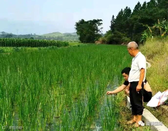 今年9月初马蹄开花时,我们也来这里,对怎么施好双骥-挪威鲍利葛特肥进行了交流并产品质量跟踪,当时苗长势很好,马蹄因生长在水田地里,看不到马蹄长势怎样。