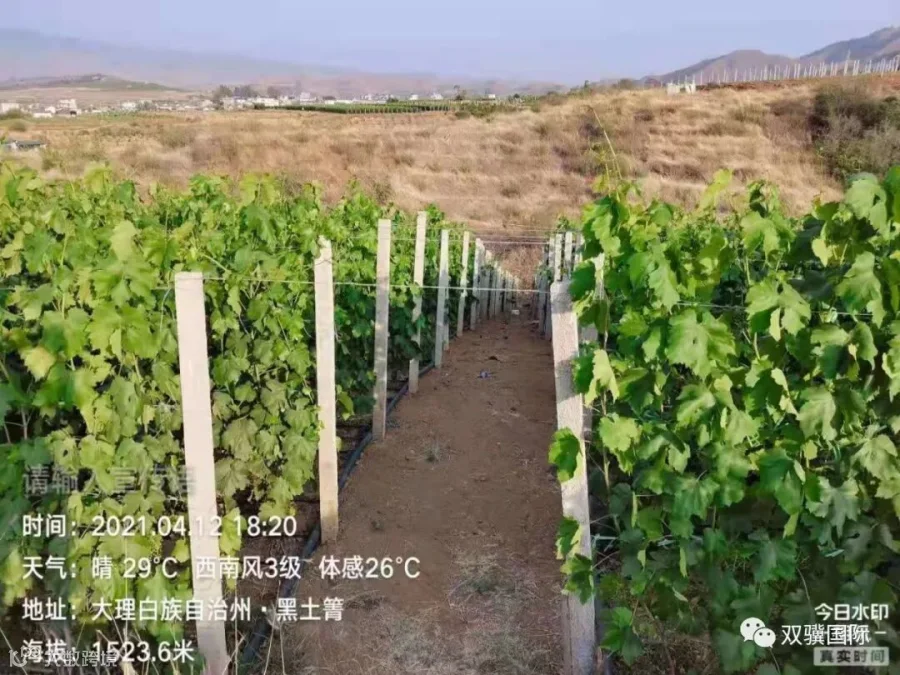 4月12日我们再次来到辛大哥的葡萄种植地,看到葡萄苗长势旺盛,第一次用肥植株高约1米,第二次用肥高约1.5米。
