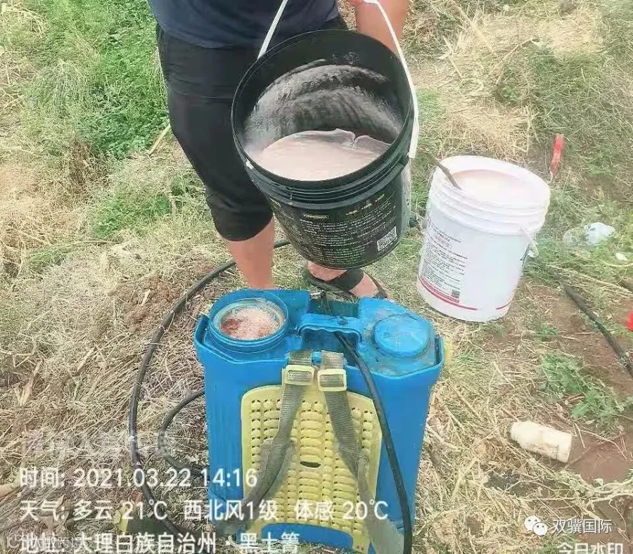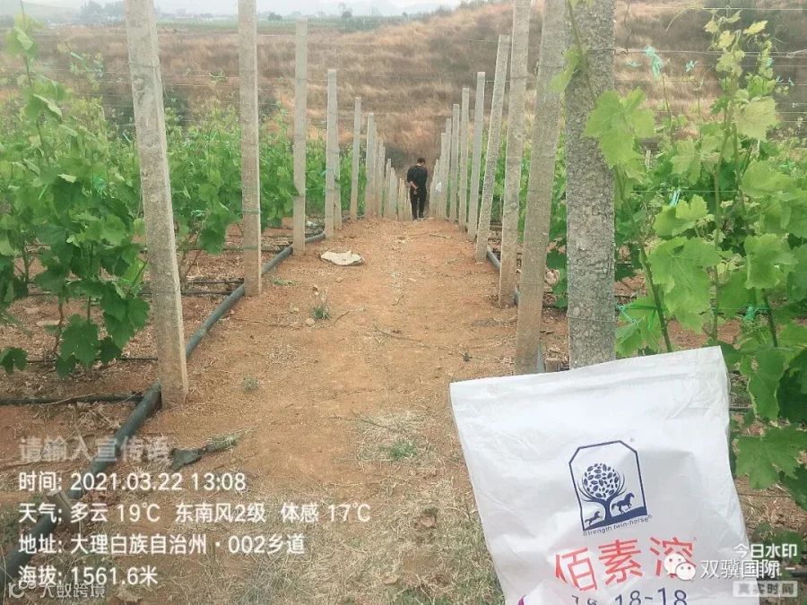2021年3月22日,我们摄制组来到黑土箐村辛大哥的葡萄种植地,对辛大哥第一次在自己葡萄种植地里,喷施“双骥-佰素溶18-18-18”特种肥作了记录,10公斤/亩+碳氮之神5公斤/亩,并进行了示范实验产品跟踪。